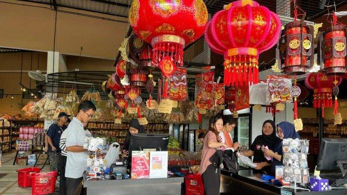Pernak-pernik khas Imlek yang menghiasi toko oleh-oleh semakin menambah semarak suasana menjelang perayaan tahun baru umat Tionghoa ini.